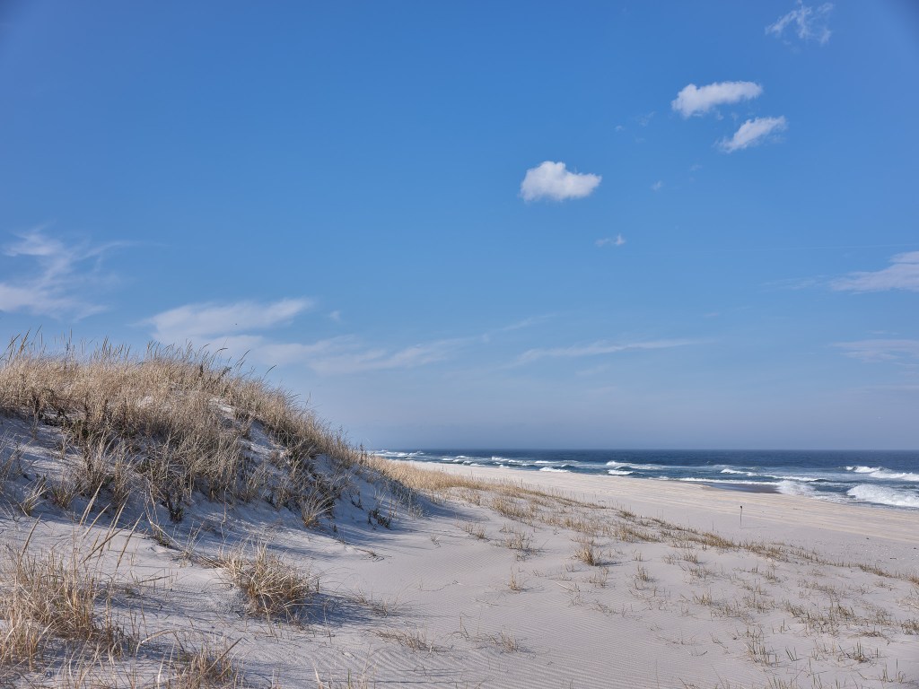 Driving almost 2 hours to get to Island Beach State is quite a drive, but most definitely, go. Take the time. Drive it. It is totally worth it. It’s nourishment for the soul. This Beach State Park is a long, thin, barrier reef shaped by storms and tidal waves. There are 10 miles of powdery, white, deep, sand that is continuously replenished by the rolling tides. Walking in it is a workout, whether it’s from the parking lot or on the beach itself. It is not a hard-packed beach, but the beach itself is worth the walk. The claim is that it can get crowded on the weekends and summer months; we have not experienced that but we visit between September to May (the reverse of summer seasonal visitors). In the summers, we are off exploring other places.