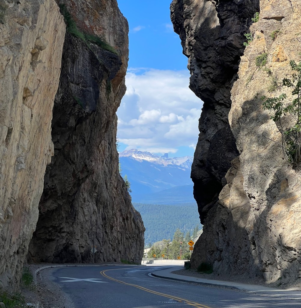 One of my husbands favorite shows to watch is Highway thru Hell/ So we headed towards Yoho National Park and went through a man-made, massive canyon that cuts through the highway on the way to Radium Hot Springs and located Jamie Davis’ storage yard from the show. It was closed, but it made his day. Oh, the little things in life are what count. He took a picture in front of the storage yard and left with a smile on his face.